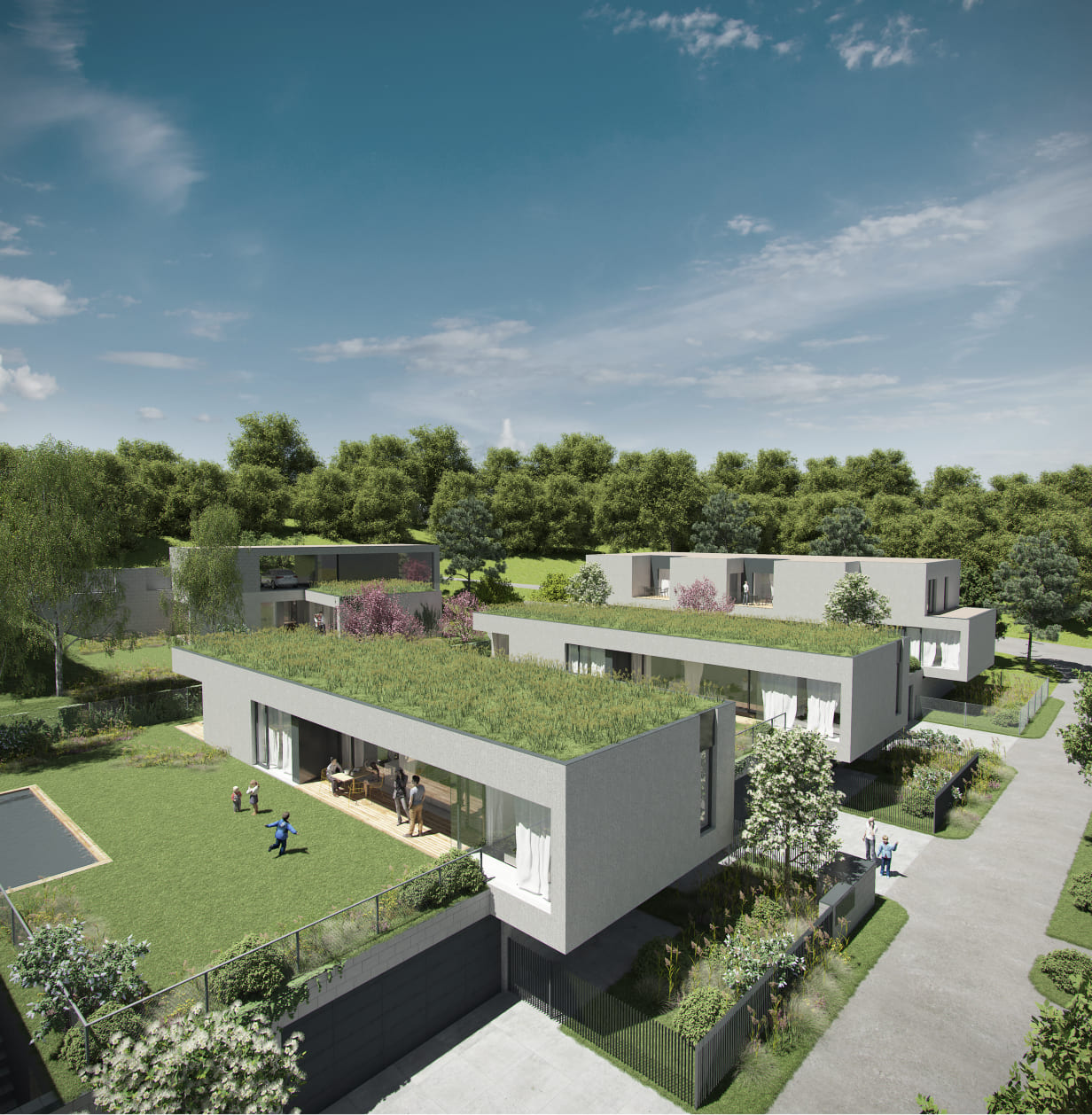 Projděte si moderní vily s plochou 160 – 230 m2 a dispozicemi 4+kk – 5+kk. Doporučujeme také tři řadové domy s 210 m2 užitné plochy.